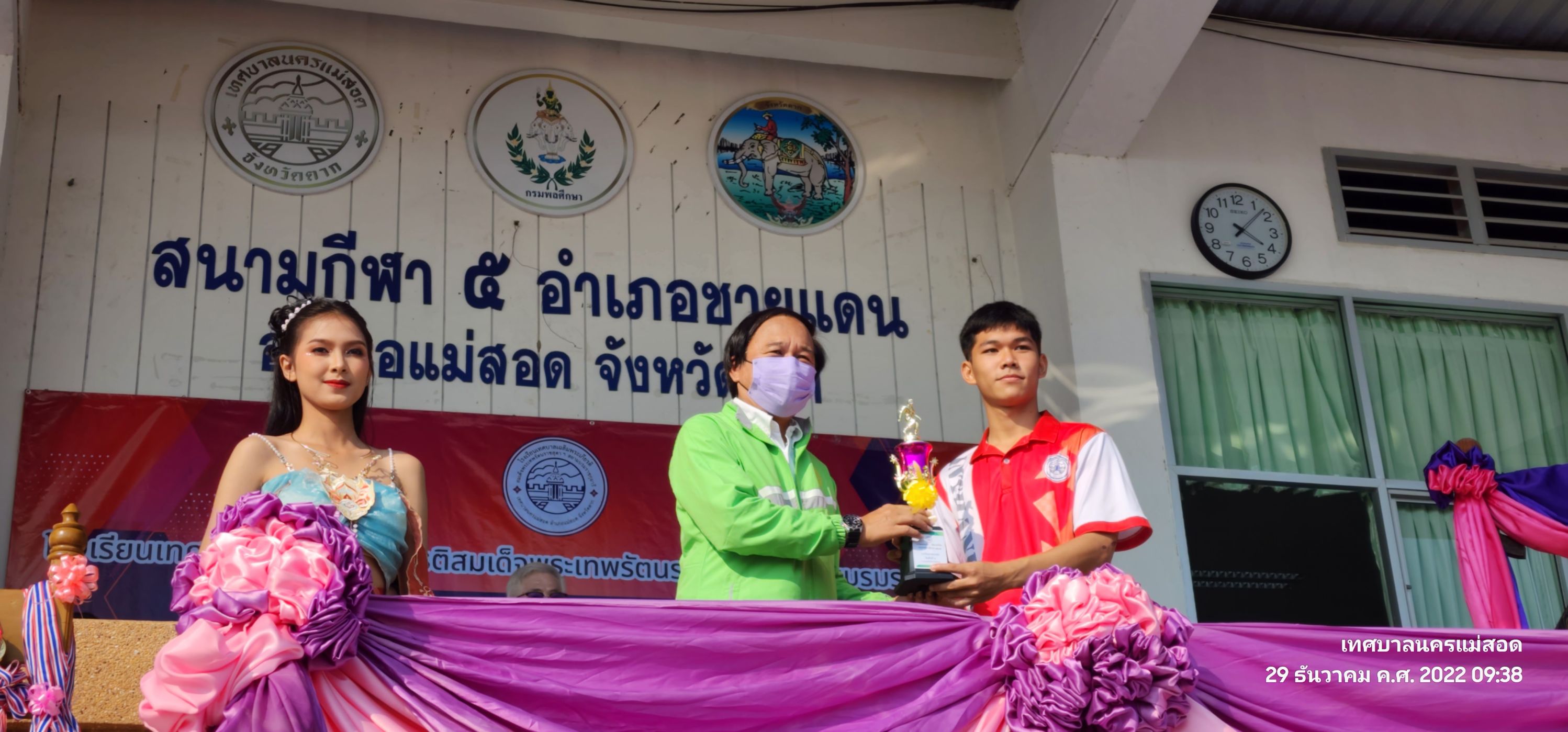 ว่าที่ร้อยตรีประเสริฐ ปวงละคร นายกเทศมนตรีนครแม่สอด เป็นประธานเปิดพิธีการแข่งขัน พร้อมด้วยคณะผู้บริหาร สมาชิกเทศบาลนครแม่สอด รองปลัดเทศบาลนครแม่สอด ผู้อำนวยการกอง ผู้อำนวยสถานศึกษา และเจ้าหน้าที่ที่เกี่ยวข้อง เข้าร่วมพิธีเปิดโครงการกิจกรรมพัฒนาผู้เรียนกลุ่มสาระการเรียนรู้สุขศึกษาและพลศึกษา ประจำปีการศึกษา 2565 โรงเรียนเทศบาลเฉลิมพระเกียรติสมเด็จพระเทพรัตนราชสุดาฯ สยามบรมราชกุมารี สังกัดเทศบาลนครแม่สอด เพื่อส่งเสริมให้นักเรียนได้เล่นกีฬา แสดงออกถึงการมีมารยาทในดู การเล่น และการแข่งขันด้วยความมีน้ำใจนักกีฬา และสามารถนำไปปฏิบัติเป็นบุคลิกภาพที่ดี อีกทั้งสร้างความสมานสามัคคีให้กับนักเรียนอีกด้วย