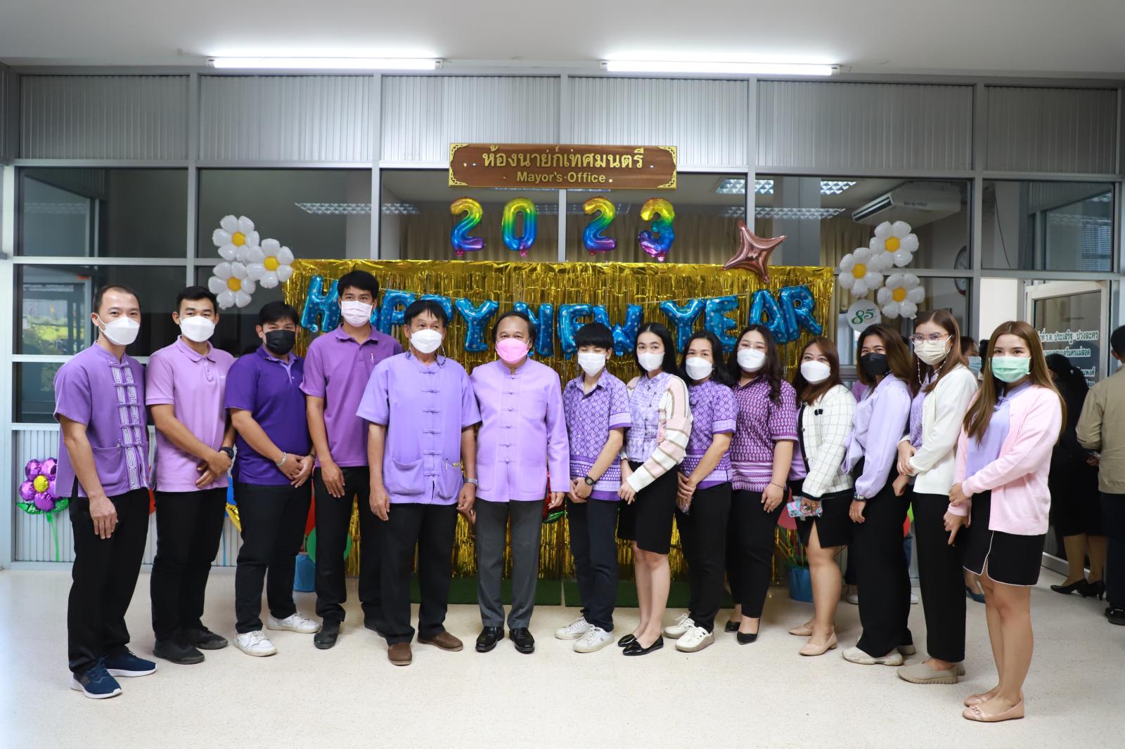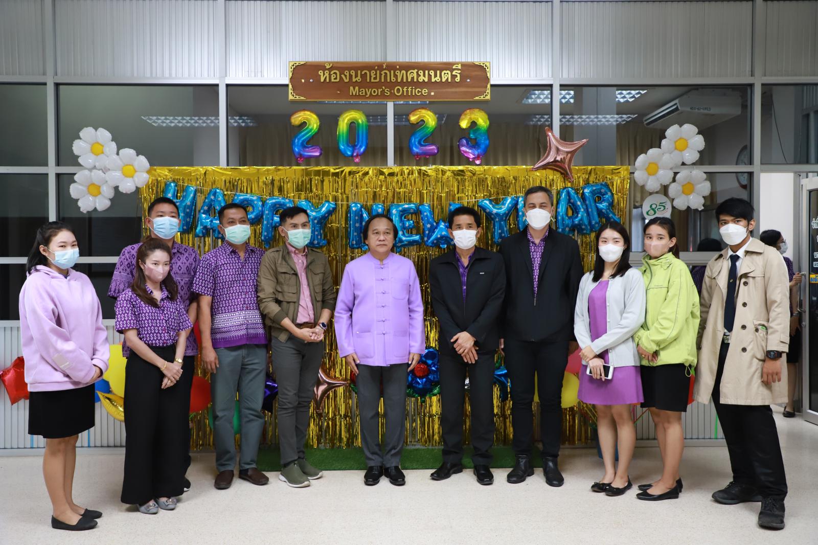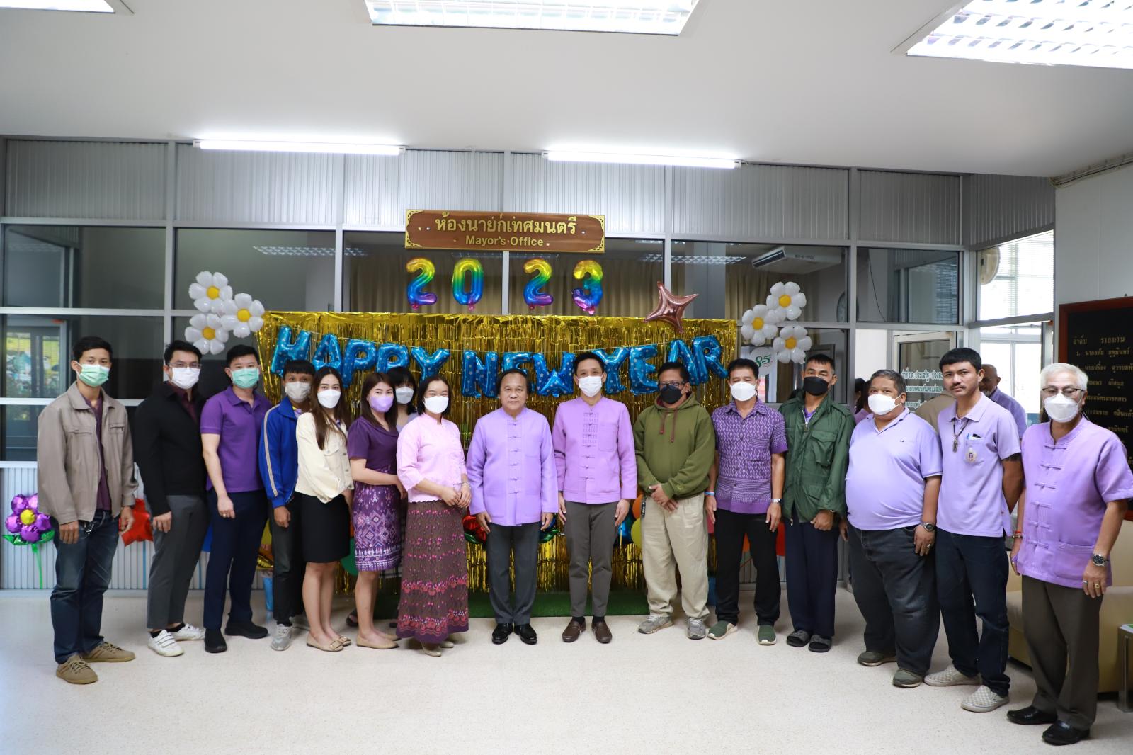 นายชาตรี สุขารมย์ ปลัดเทศบาลนครแม่สอด พร้อมด้วยผู้อำนวยการกอง หัวหน้าส่วนราชการ ข้าราชการและพนักงานเทศบาลนครแม่สอด เข้าพบ ว่าที่ร้อยตรี ประเสริฐ ปวงละคร นายกเทศมนตรีนครแม่สอด พร้อมคณะผู้บริหาร เพื่อขอพรปีใหม่ เนื่องในโอกาสเทศกาลปีใหม่ 2566