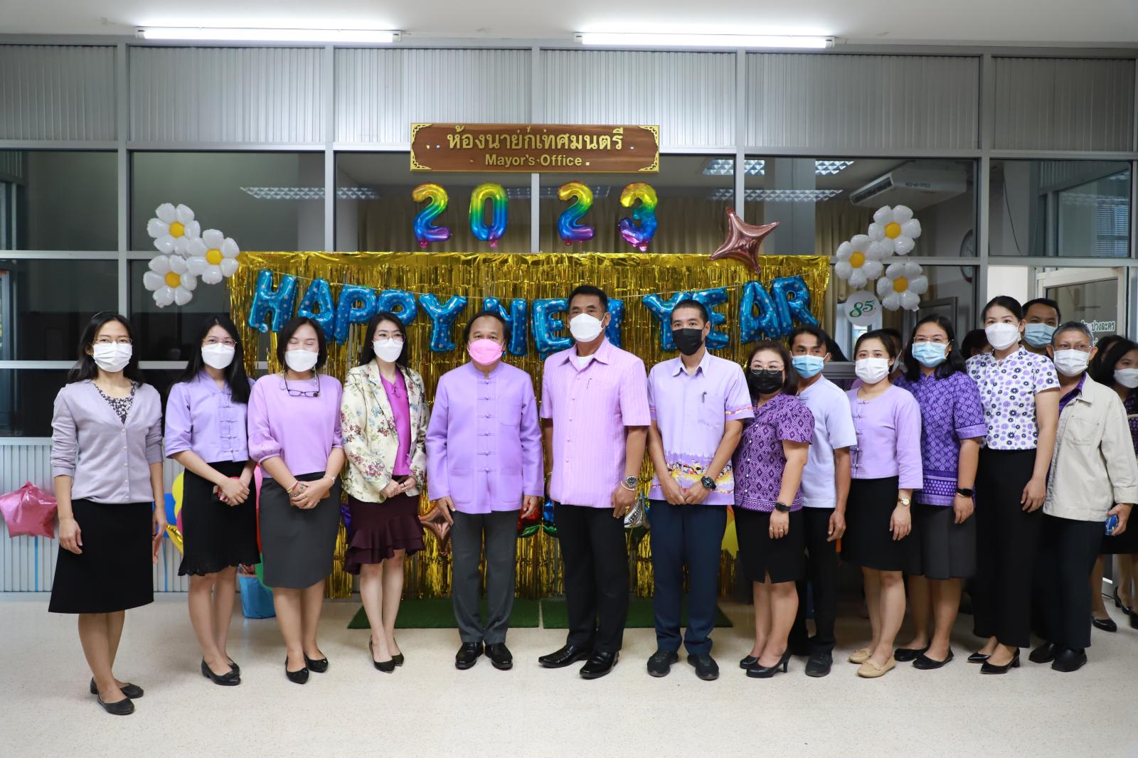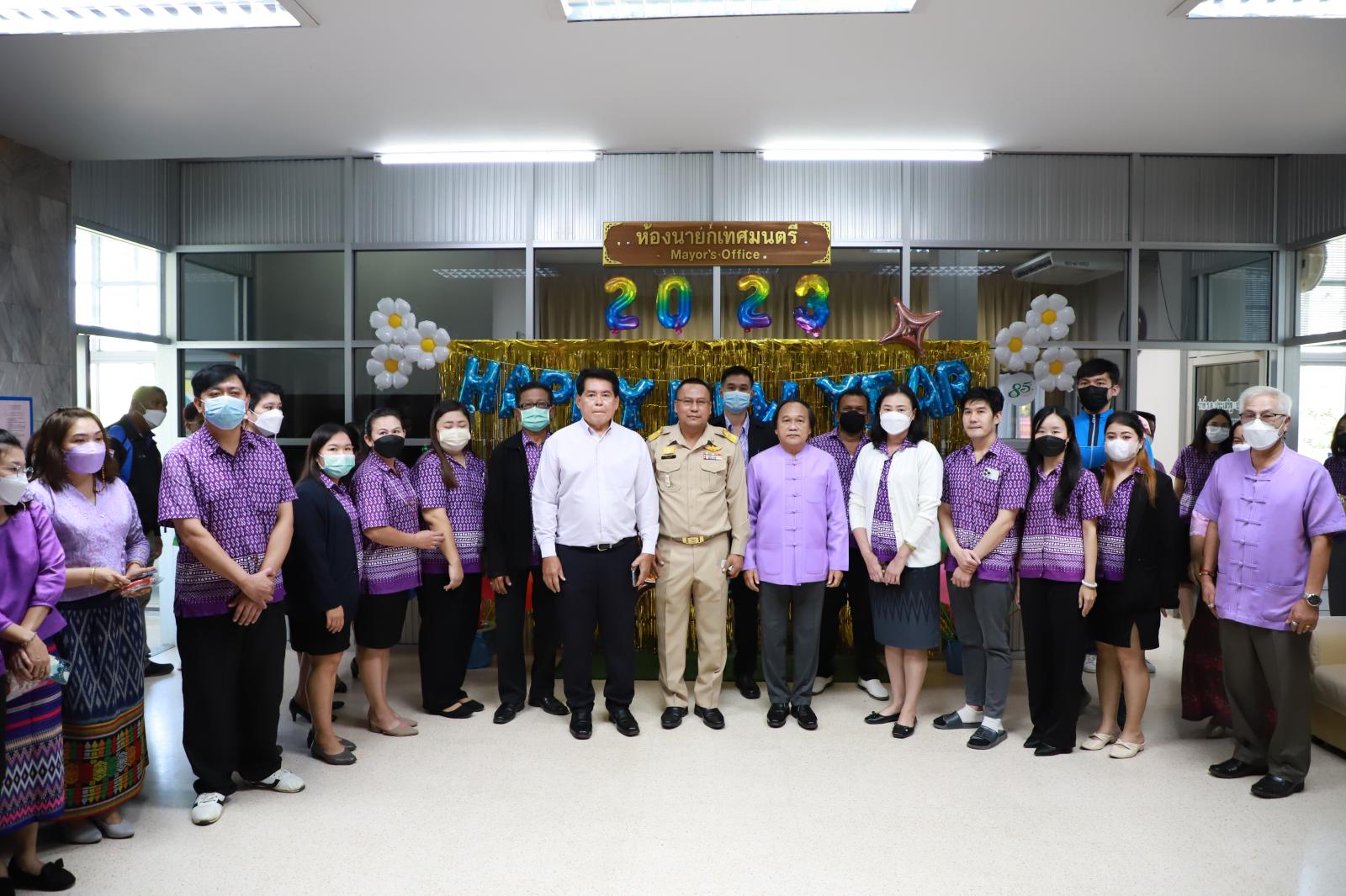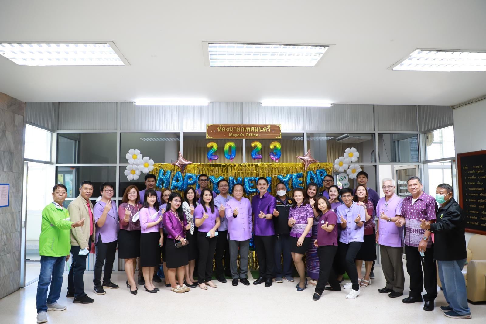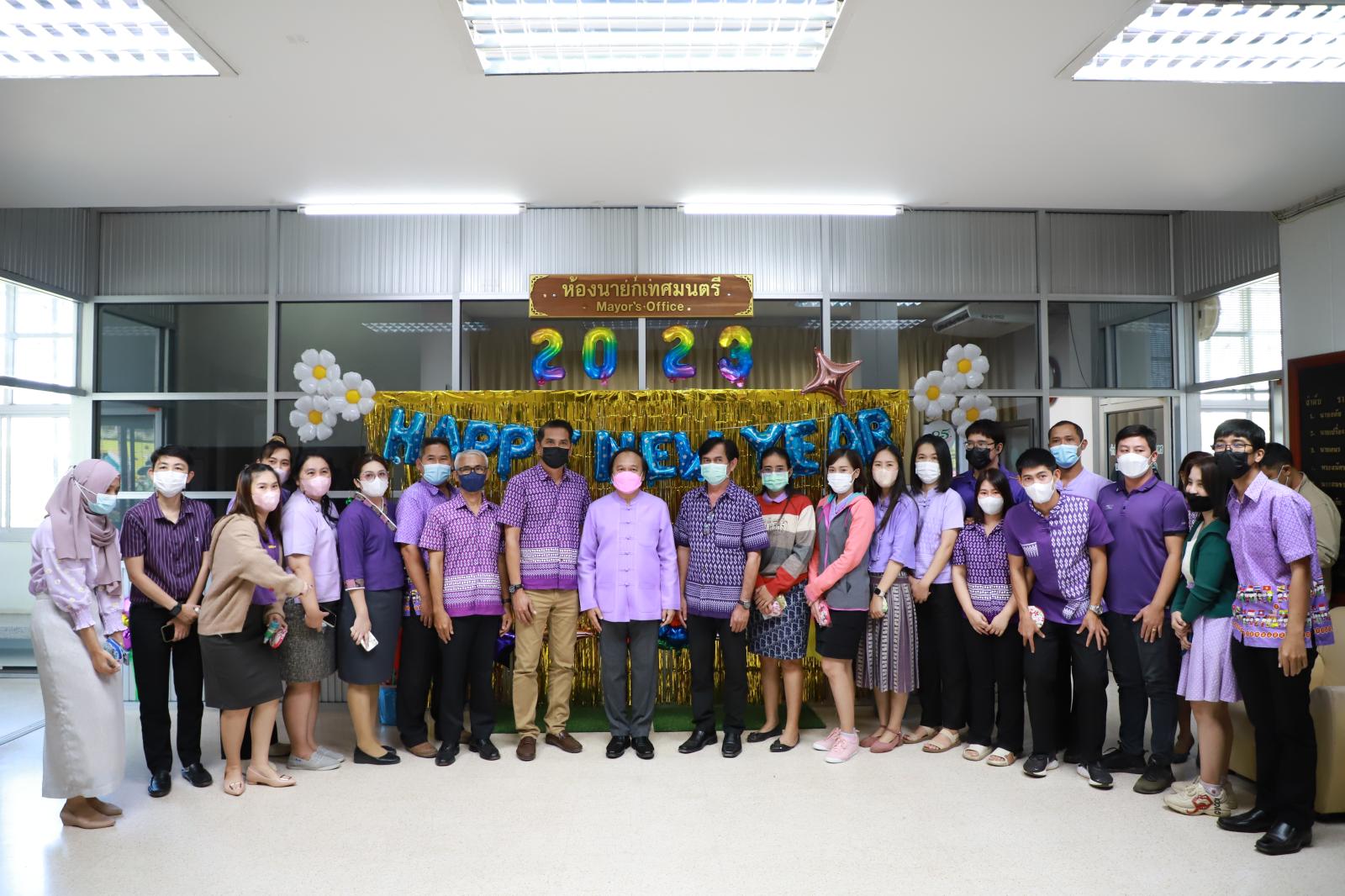 นายชาตรี สุขารมย์ ปลัดเทศบาลนครแม่สอด พร้อมด้วยผู้อำนวยการกอง หัวหน้าส่วนราชการ ข้าราชการและพนักงานเทศบาลนครแม่สอด เข้าพบ ว่าที่ร้อยตรี ประเสริฐ ปวงละคร นายกเทศมนตรีนครแม่สอด พร้อมคณะผู้บริหาร เพื่อขอพรปีใหม่ เนื่องในโอกาสเทศกาลปีใหม่ 2566