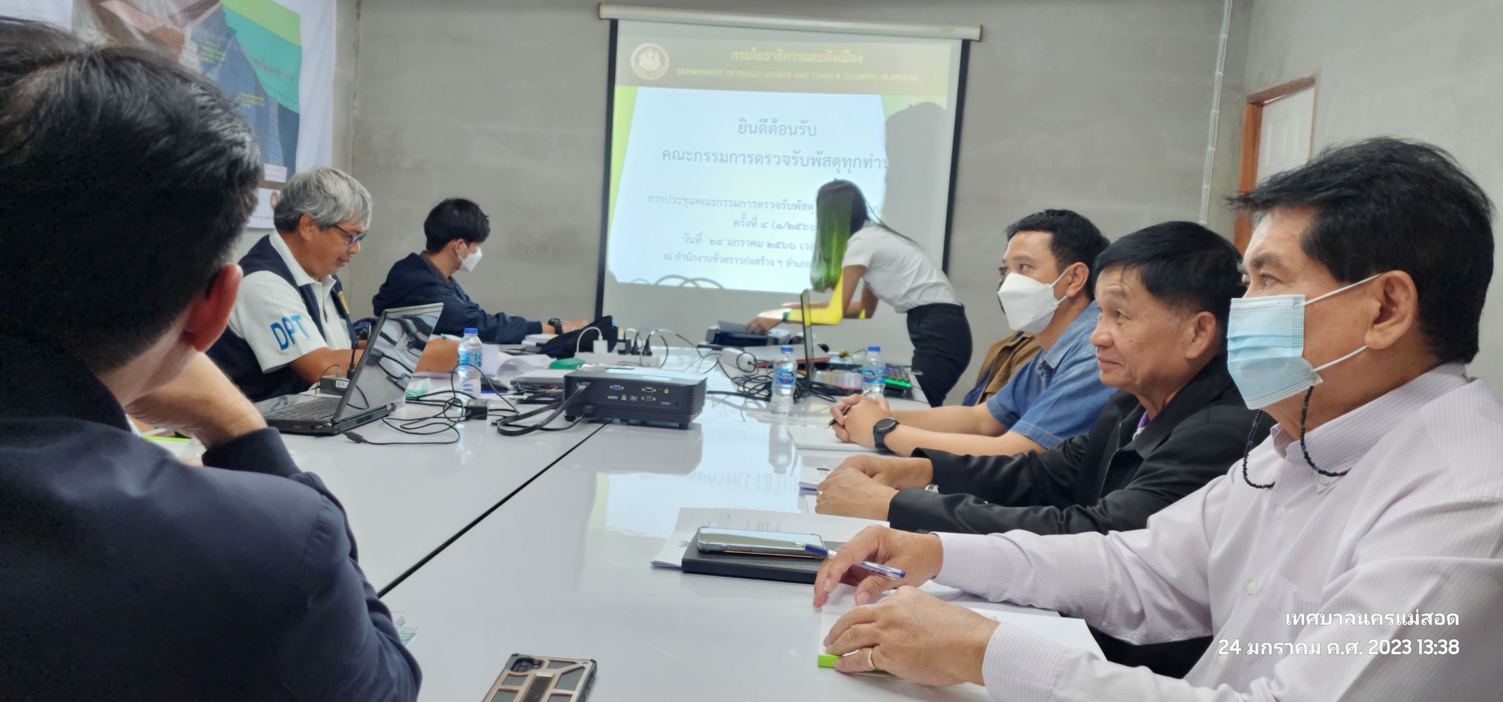 ว่าที่ร้อยตรีประเสริฐ ปวงละคร นายกเทศมนตรีนครแม่สอด มอบหมายให้นายกรรณ กัณฑ์นิล รองนายกเทศมนตรีนครแม่สอด พร้อมด้วยว่าที่ร้อยตรี สมชาย จาจุ๋ย หัวหน้าฝ่ายการโยธา รักษาราชการแทนผู้อำนวยการกองช่างสุขาภิบาลเทศบาลนครแม่สอด เข้าร่วมประชุมคณะกรรมการตรวจรับพัสดุ (ติดตามงานก่อสร้าง) ครั้งที่ 4 1/2566 โครงการพัฒนาตามผังเมืองรวมเมืองแม่สอด กรมโยธาธิการและผังเมือง