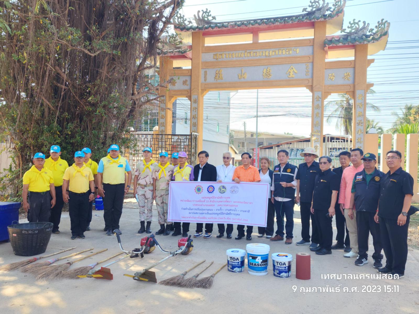 ว่าที่ร้อยตรี ประเสริฐ ปวงละคร นายกเทศมนตรี นครแม่สอด มอบหมายให้นายกรณพงค์ คงปาน รองนายกเทศมนตรีนครแม่สอด พร้อมด้วยคณะผู้บริหาร สมาชิกสภาเทศบาลเทศบาลนครแม่สอด หน่วยพัฒนาการเคลื่อนที่ 33 สำนักงานทหารพัฒนา และคณะจิตอาสา ปกครองอำเภอแม่สอด เข้าร่วมดำเนินการปรับปรุงงานถนน งานรั้ว งานสระน้ำ งานทาสีฌาปนสถานสุสานจีนแม่สอดมูลนิธิสามัคคีการกุศล