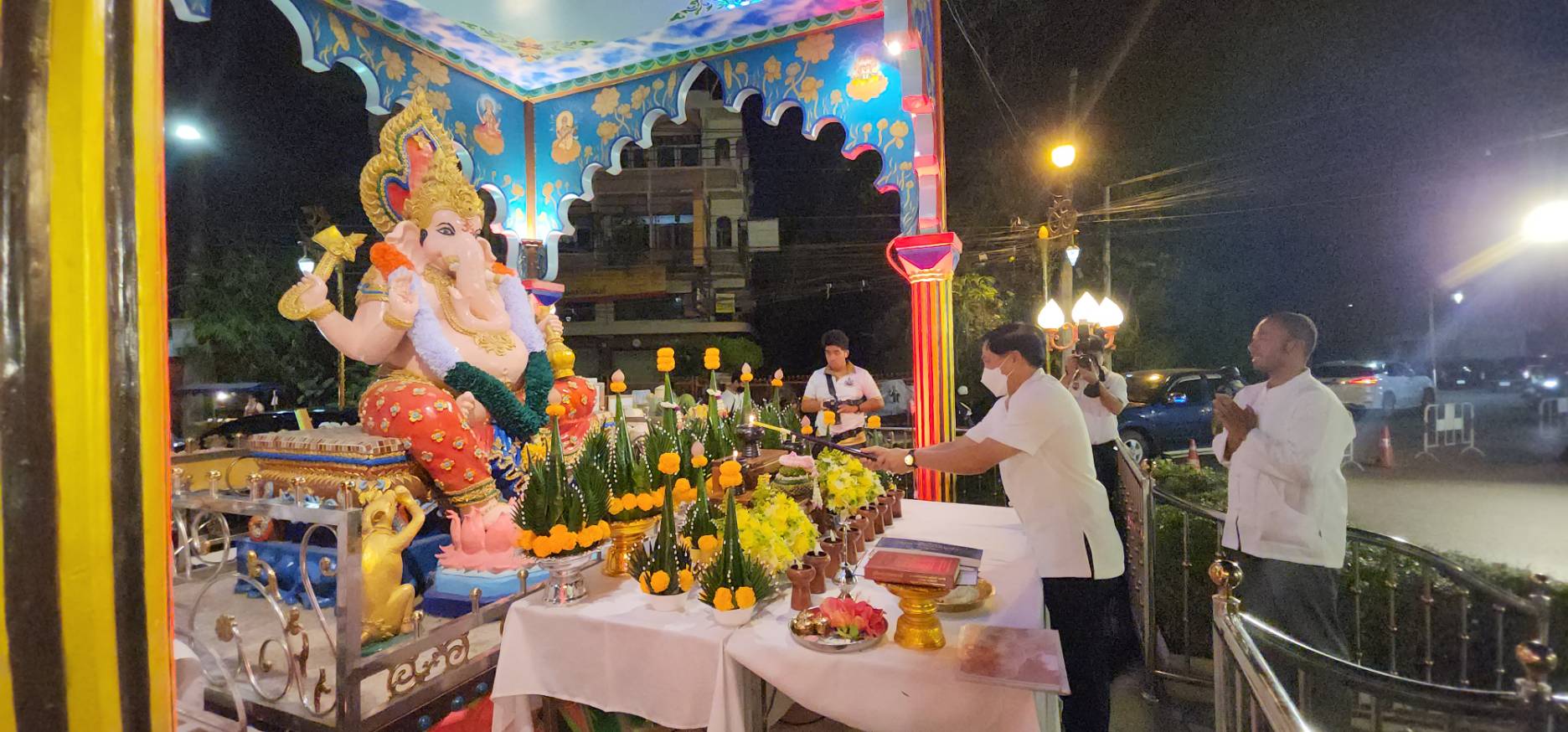 ว่าที่ร้อยตรี ประเสริฐ ปวงละคร นายกเทศมนตรี นครแม่สอด มอบหมายให้นายกรณพงศ์ คงปาน รองนายกเทศมนตรีนครแม่สอด พร้อมด้วยคณะผู้บริหาร สมาชิกสภาเทศบาลเทศบาลนครแม่สอด ร่วมงานเฉลิมฉลองครบรอบ 12 ปี เทวาลัยวงเวียนพระพิฆเนศวร