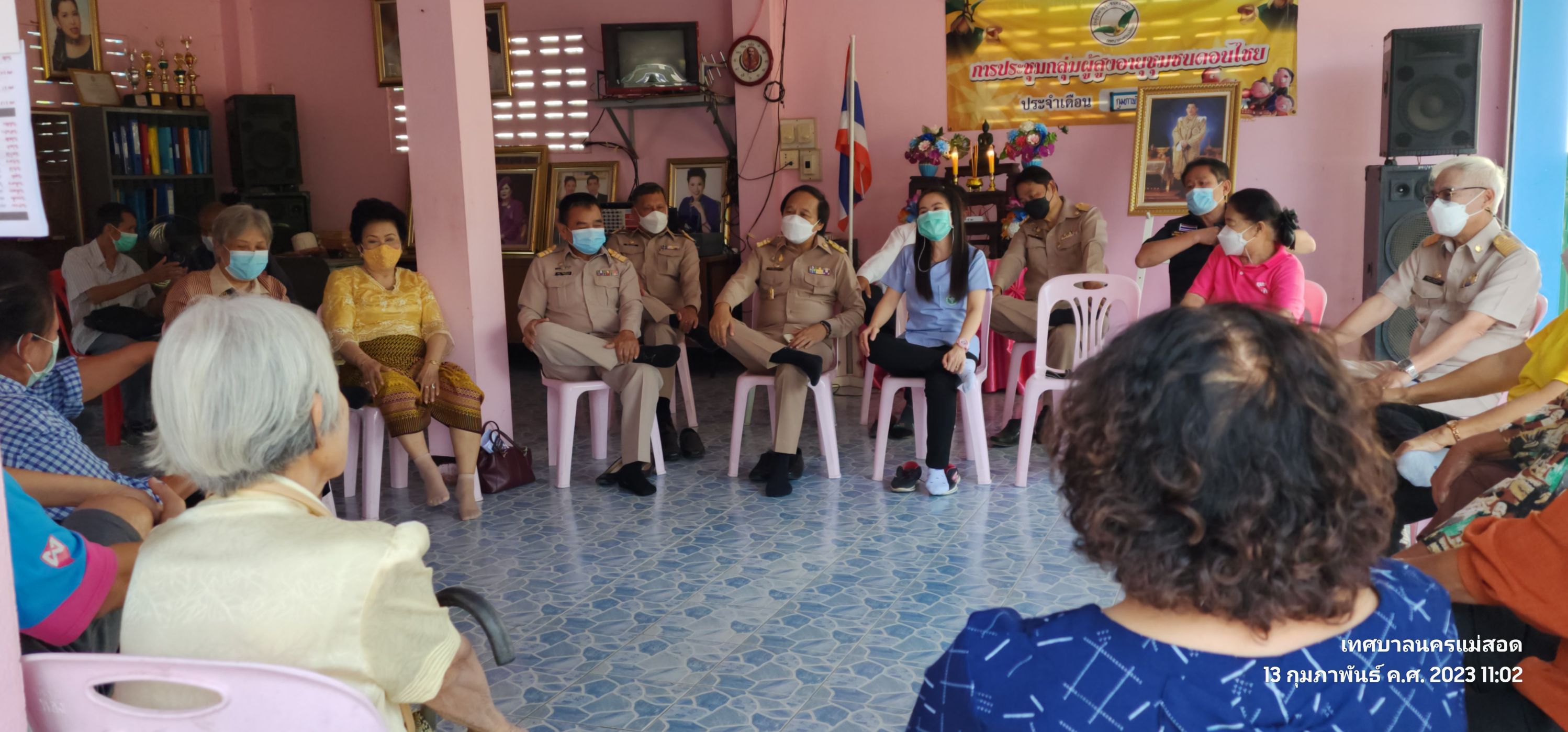 ว่าที่ร้อยตรี ประเสริฐ ปวงละคร นายกเทศมนตรีนครแม่สอด พร้อมคณะผู้บริหาร สมาชิกสภาเทศมนตรีนครแม่สอด และเจ้าหน้าที่คลินิกชุมชนอบอุ่นเทศบาลนครแม่สอด เข้าร่วมกิจกรรมผู้สูงอายุ และประชุมประจำเดือน กุมภาพันธ์ 2566 เพื่อพบปะ พูดคุย และทำกิจกรรมร่วมกัน