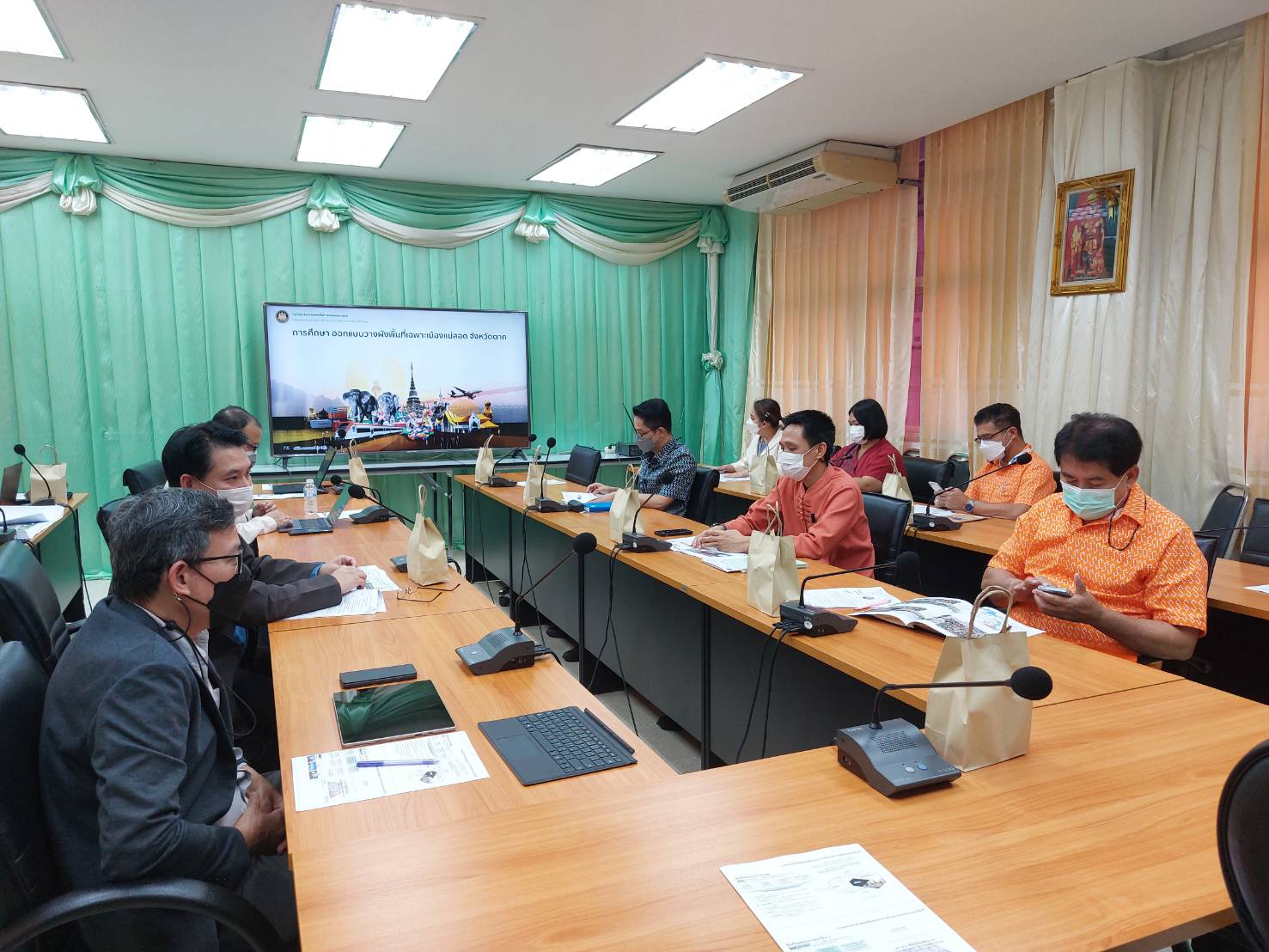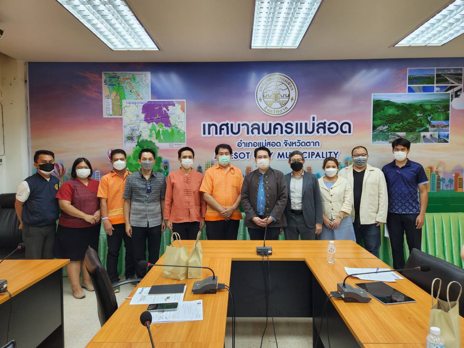 ว่าที่ร้อยตรี ประเสริฐ ปวงละคร นายกเทศมนตรีนครแม่สอด มอบหมายให้นายกรรณ กัณฑ์นิล รองนายกเทศมนตรี พร้อมด้วยนายอรรฆรัตน์ อรัญพิทักษ์ ผู้อำนวยการกองช่าง และว่าที่พันตรี ดร.ไพฑูรย์ ปริญญาธรรมกุล ผู้อำนวยการกองยุทธศาสตร์และงบประมาณ ข้าราชการและเจ้าหน้าที่ที่เกี่ยวข้องเทศบาลนครแม่สอด เข้าร่วมประชุมกับกรมโยธาธิการและผังเมือง เพื่อหารือและรับฟังนโยบายและทิศทางการพัฒนาพื้นที่การศึกษาออกแบบวางผังพื้นที่เฉพาะเมืองแม่สอด จังหวัดตาก