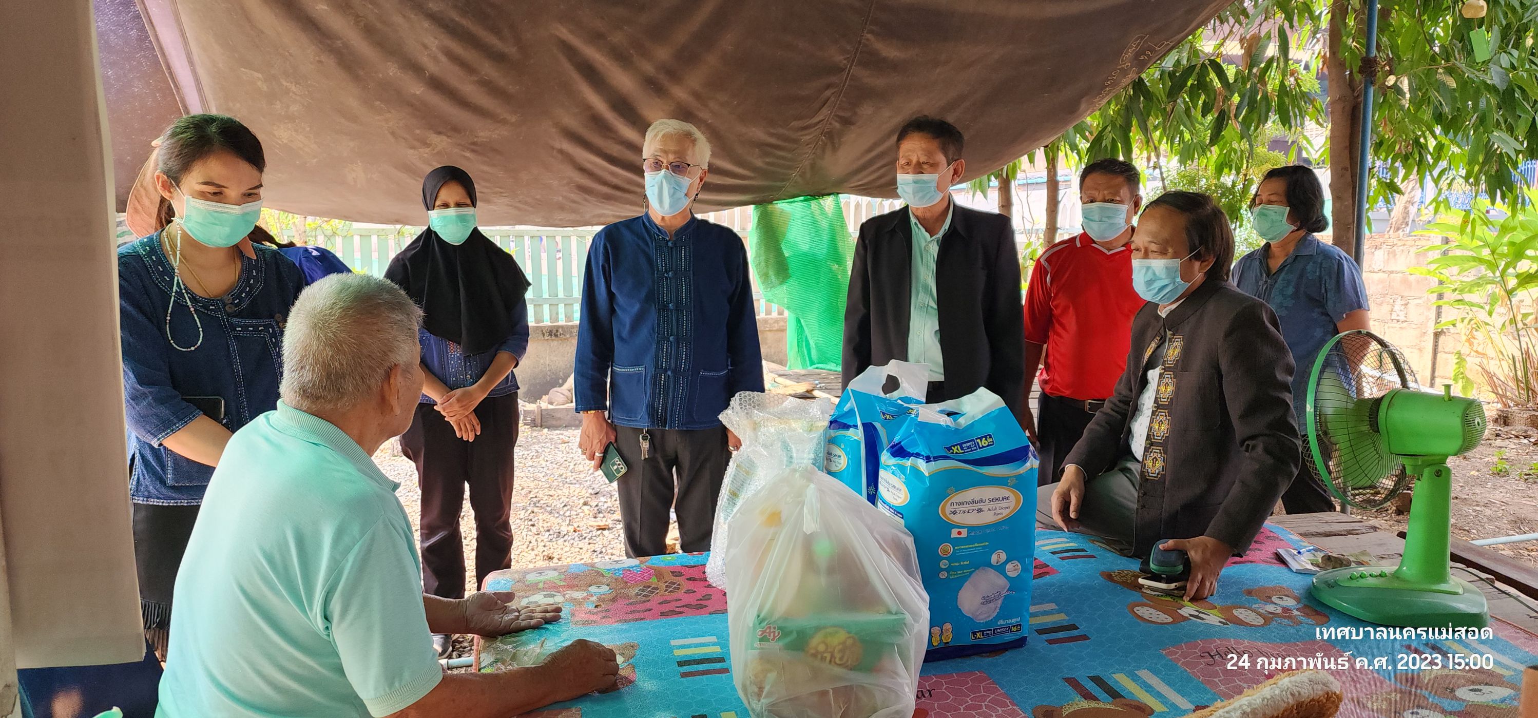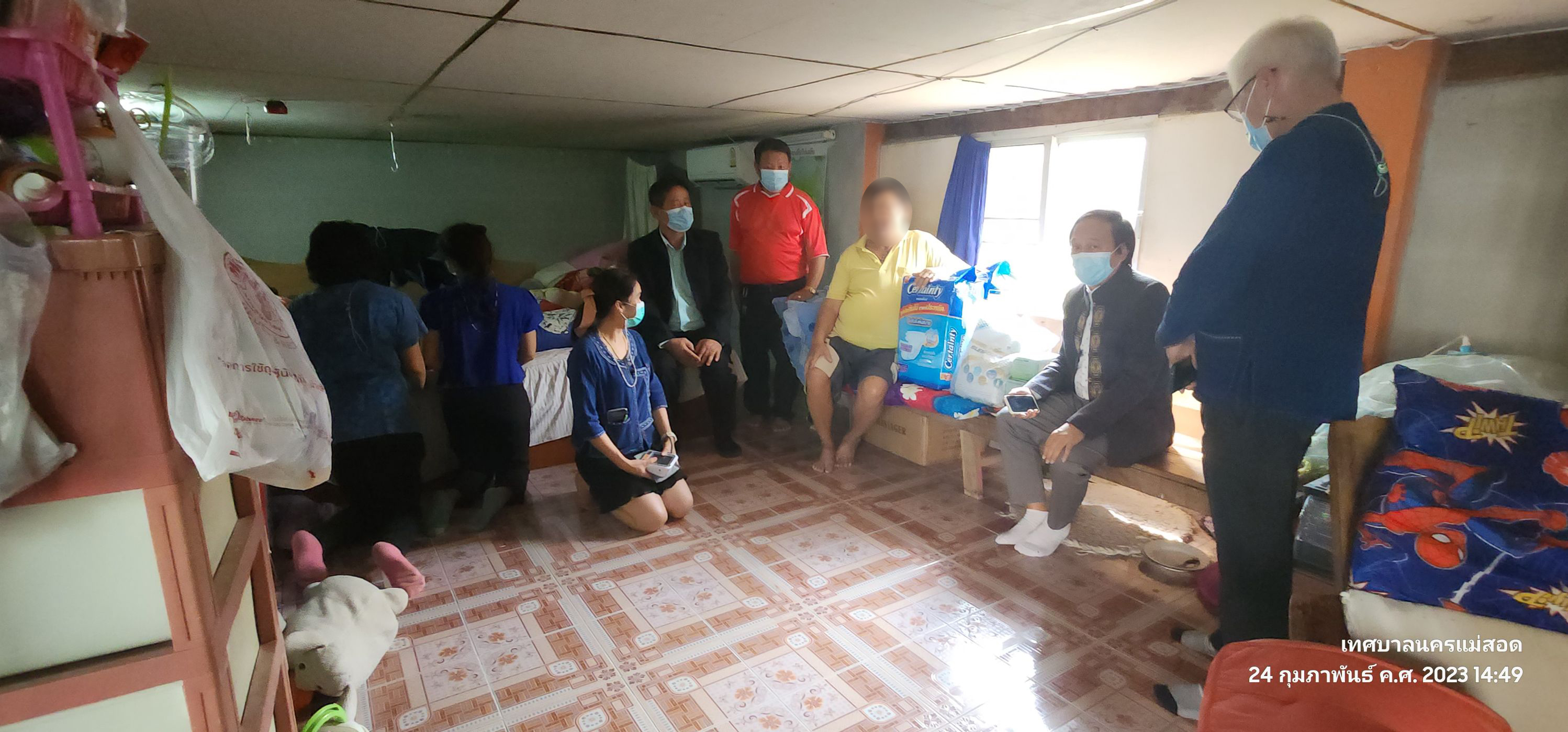 ว่าที่ร้อยตรี ประเสริฐ ปวงละคร นายกเทศมนตรีนครแม่สอด พร้อมด้วยคณะผู้บริหาร สมาชิกสภาเทศบาล เจ้าหน้าที่คลินิกชุมชนอบอุ่นลงพื้นที่เยี่ยมเยือนผู้ป่วยติดเตียงในชุมชนประชารักษ์ และชุมชนสันต้นปิน เขตเทศบาลนครแม่สอด จำนวน 4 ราย เพื่อพบปะ พูดคุย ให้กำลังใจในการใช้ชีวิต และถุงยังชีพสิ่งอำนวยความสะดวก เพื่อใช้ประโยชน์ในการดำรงชีวิต รวมถึงหาแนวทางการให้ความช่วยเหลือผู้ป่วยต่อไป โดยมีนายอัครเดช ตาสะหลี ประธานผู้บริหารบริษัทแม่สอดฟรีโซน จำกัด ผู้สนับสนุนสิ่งของการลงเยี่ยม ในครั้งนี้