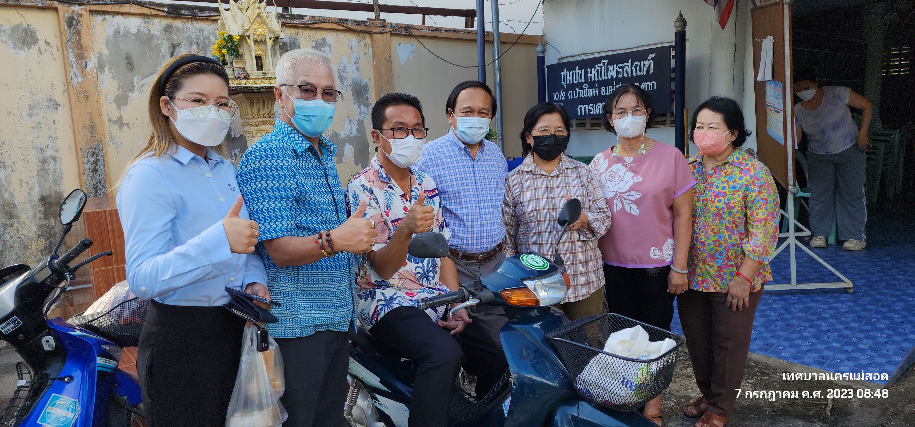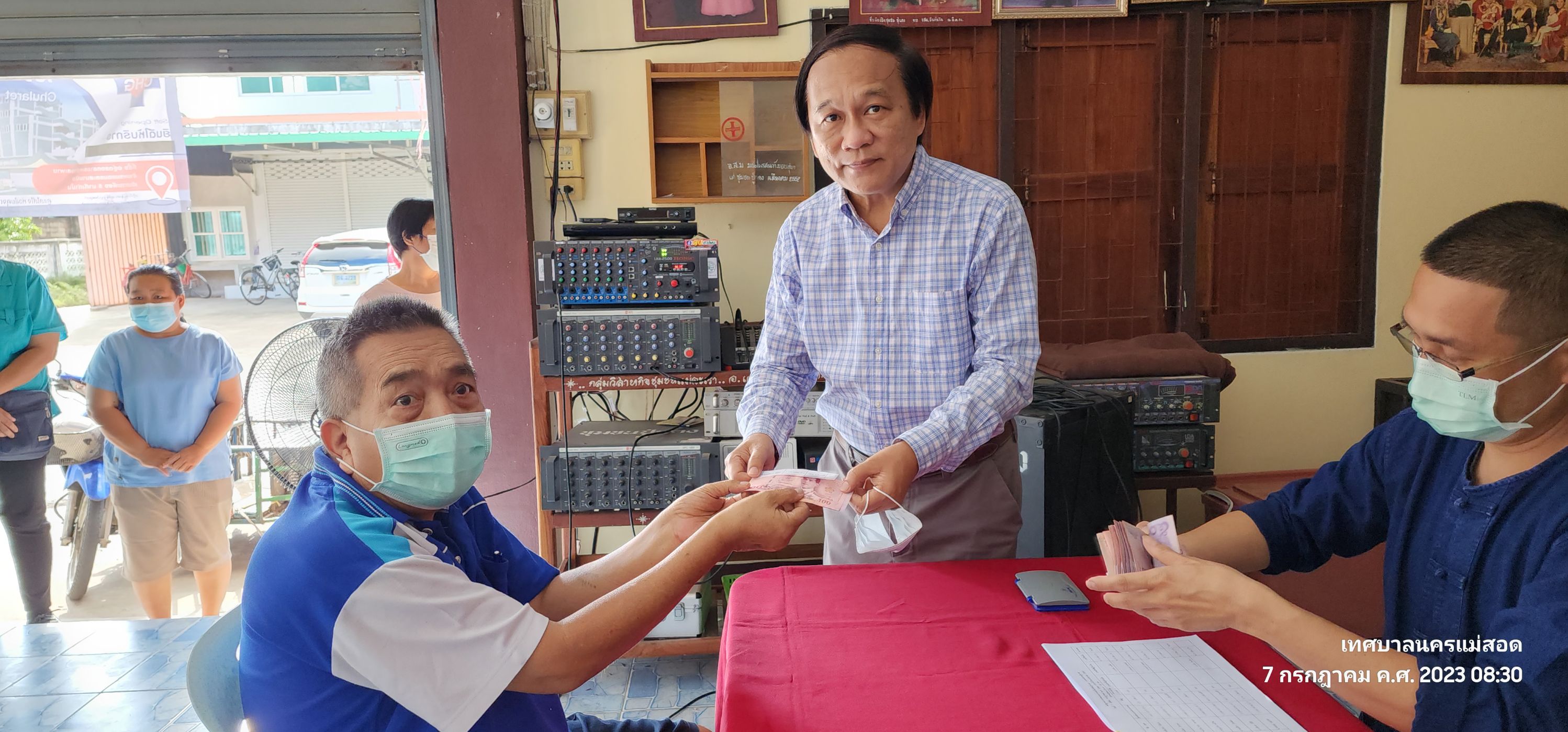 ว่าที่ร้อยตรีประเสริฐ ปวงละคร นายกเทศมนตรีนครแม่สอด พร้อมด้วยคณะผู้บริหาร สมาชิกสภาเทศบาลและเจ้าหน้าที่กองสวัสดิการสังคมเทศบาลนครแม่สอด ลงพื้นที่แจกเบี้ยยังชีพผู้สูงอายุและผู้พิการ ประจำเดือนกรกฎาคม 2566 ในเขตเทศบาลนครแม่สอด ทั้ง 20 ชุมชน พร้อมทั้งได้มีการพบปะ พูดคุย สอบถามปัญหาและประชาสัมพันธ์ข้อมูลข่าวสารต่างๆ ให้กับประชาชนที่มารับเบี้ยยังชีพและผู้พิการ