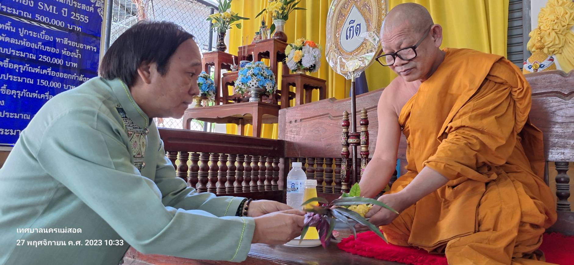 ว่าที่ร้อยตรี ประเสริฐ ปวงละคร นายกเทศมนตรีนครแม่สอด พร้อมด้วยคณะผู้บริหาร สมาชิกสภาเทศบาล และเจ้าหน้าที่ที่เกี่ยวข้อง เข้าร่วมพิธีทำบุญทอดผ้าป่าสามัคคี เพื่อสมทบทุนพัฒนาชุมชนสักทอง