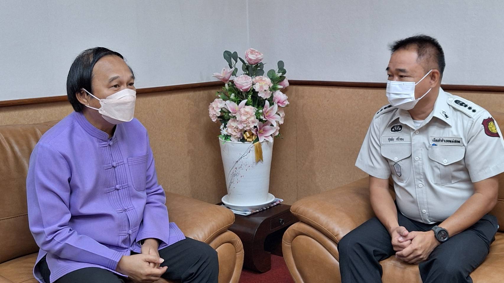 ว่าที่ร้อยตรี ประเสริฐ ปวงละคร นายกเทศมนตรีนครแม่สอด พร้อมด้วยนายไกรสร กิจการ และนายกรกฤตย์ กรัณยพัฒนพงศ์ รองนายกเทศมนตรีนครแม่สอด ร่วมให้การต้อนรับ นายศุภชัย ศรีกอง ผู้บัญชาการเรือนจำอำเภอแม่สอด และคณะฯ เพื่อปรึกษาหารือข้อราชการต่าง ๆ