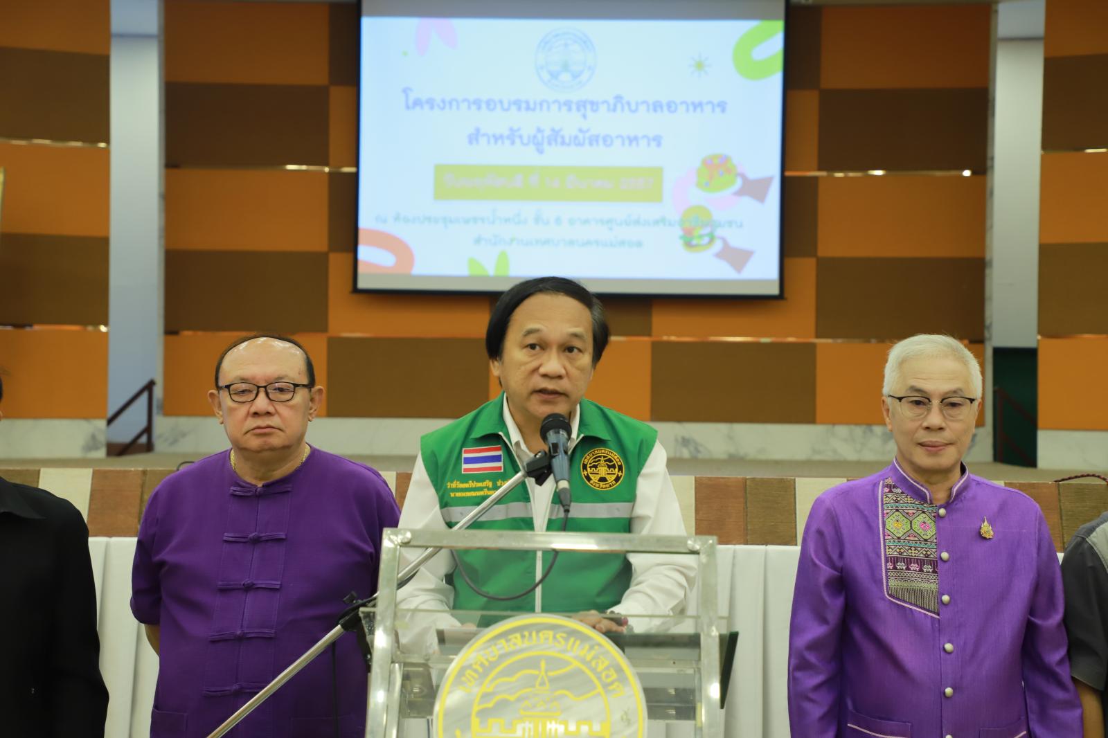 ว่าที่ร้อยตรี ประเสริฐ ปวงละคร นายกเทศมนตรีนครแม่สอด พร้อมด้วย คณะผู้บริหาร สมาชิกสภา รองปลัดเทศบาลนครแม่สอด ผู้อำนวยการกอง และเจ้าหน้าที่ที่เกี่ยวข้อง ร่วมพิธีเปิดโครงการอบรมการสุขาภิบาลอาหาร สำหรับผู้สัมผัสอาหาร