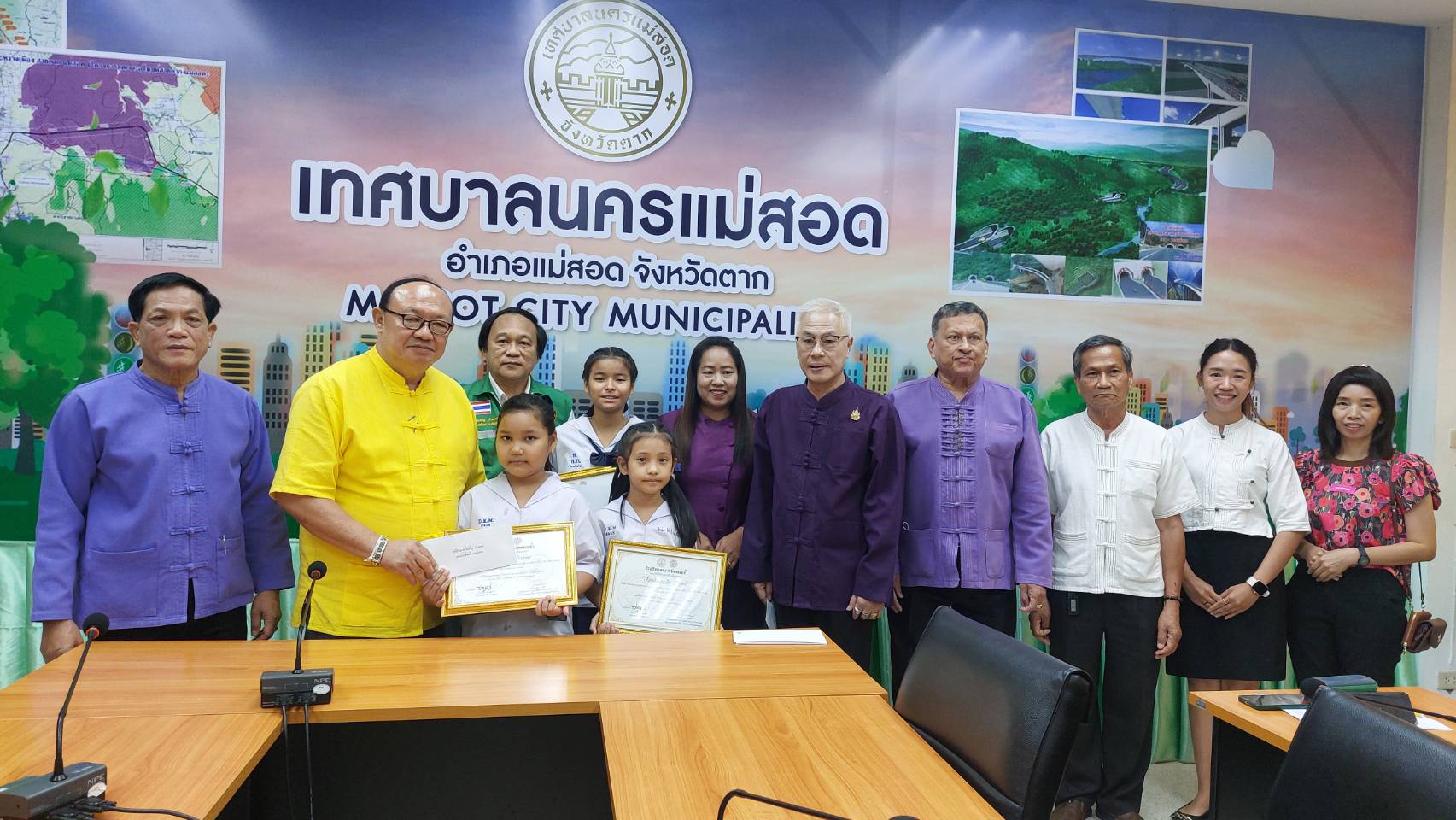 ว่าที่ร้อยตรี ประเสริฐ ปวงละคร นายกเทศมนตรีนครแม่สอด พร้อมด้วย คณะผู้บริหาร สมาชิกสภาเทศบาล คณะครูจากโรงเรียนเทศบาลวัดดอนแก้ว และเจ้าหน้าที่ที่เกี่ยวข้อง ร่วมแสดงความยินดีกับนักเรียนที่ทำคะแนนได้ 100 คะแนน จากการประเมินความสามารถด้านการอ่านของผู้เรียน (RT) ระดับชั้นประถมศึกษาปีที่ 1 ปีการศึกษา 2566 และการทดสอบทางการศึกษาระดับชาติ ขั้นพื้นฐาน (O-NET) รายวิชา ภาษาอังกฤษ ระดับชั้นประถมศึกษาปีที่ 6 ปีการศึกษา 2566