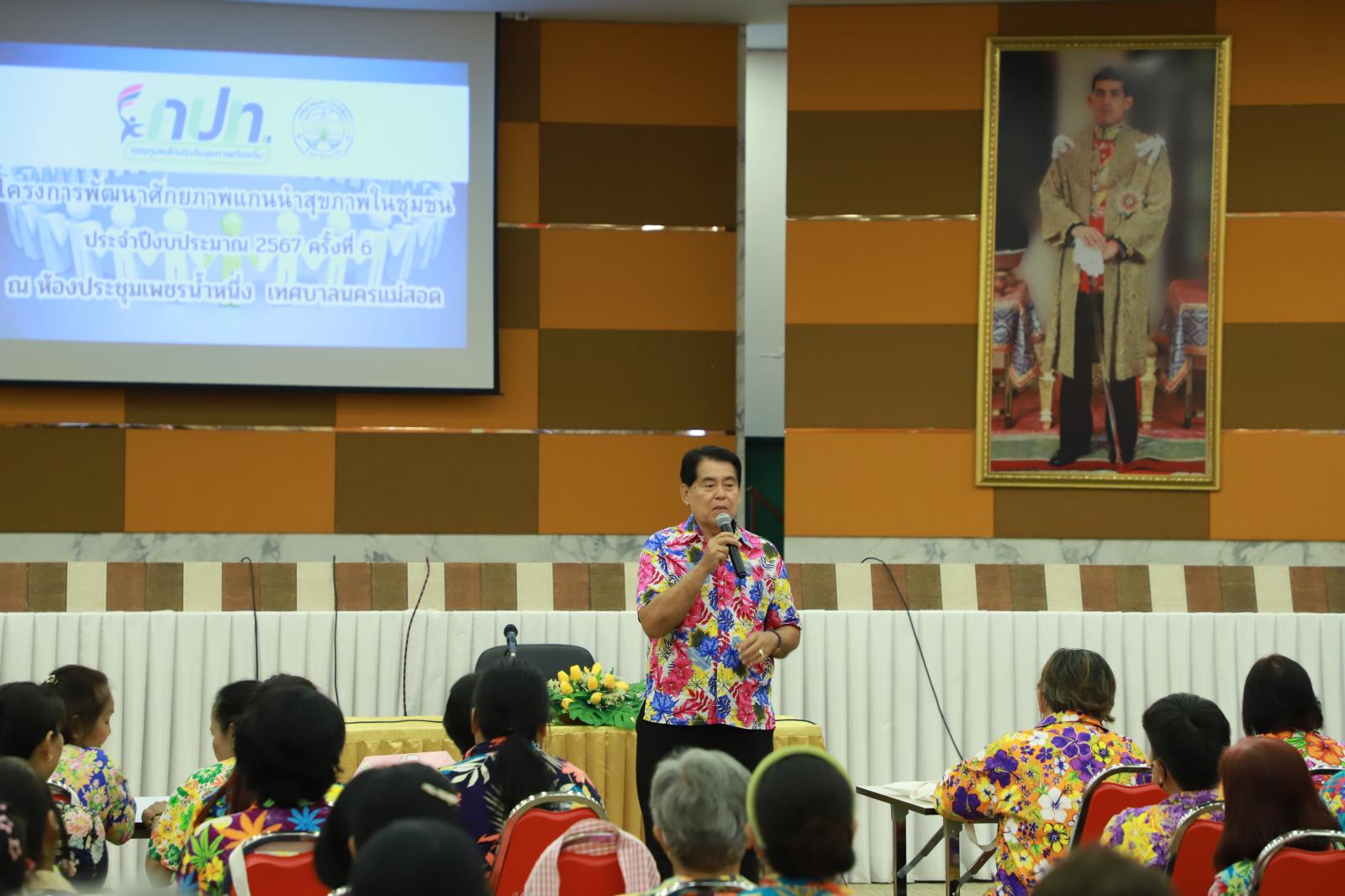 ว่าที่ร้อยตรี ประเสริฐ ปวงละคร นายกเทศมนตรีนครแม่สอด พร้อมด้วยคณะผู้บริหาร สมาชิกสภาเทศบาล และเจ้าหน้าที่คลินิกชุมชนอบอุ่น กองสาธารณสุขและสิ่งแวดล้อม จัดโครงการพัฒนาศักยภาพแกนนำสุขภาพในชุมชน ครั้งที่ 6 ประจำปีงบประมาณ 2567 โดยมีวัตถุประสงค์เพื่อพัฒนาศักยภาพแกนนำ ฯ ในการดูแลสุขภาพของประชาชน ส่งเสริมให้แกนนำมีความรู้ทันต่อสถานการณ์ด้วยวิธีการหลากหลาย พัฒนาองค์ความรู้ใหม่ ๆ เพิ่มทักษะทางวิชาการด้านสาธารณสุข นำความรู้และทักษะที่ได้รับมาส่งเสริมสุขภาพประชาชนในชุมชนเพื่อให้มีคุณภาพชีวิตที่ดีขึ้น ให้กับ อ.ส.ม.