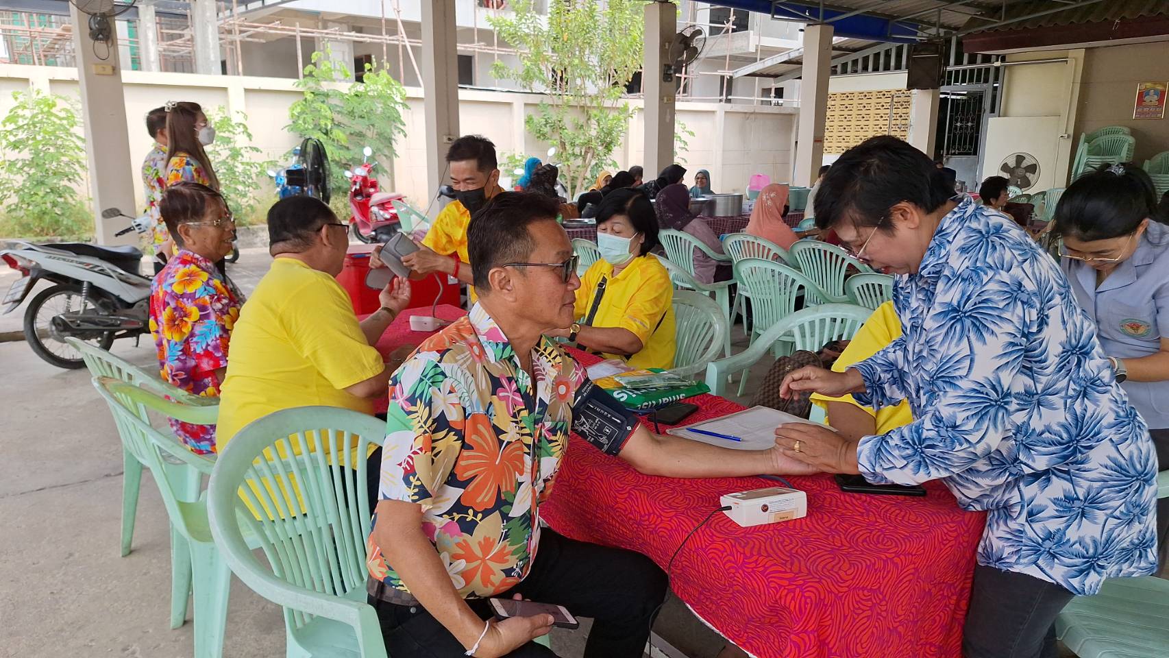 ว่าที่ร้อยตรี ประเสริฐ ปวงละคร นายกเทศมนตรีนครแม่สอด พร้อมด้วย คณะผู้บริหาร สมาชิกสภาเทศบาลนครแม่สอด เจ้าหน้าที่คลินิกชุมชนอบอุ่น และอสม. เข้าร่วมการประชุมกลุ่มผู้สูงอายุชุมชนอิสลาม ประจำเดือนเมษายน โดยมีกิจกรรมตรวจสุขภาพเบื้องต้น ให้ความรู้ส่งเสริมสุขภาพป้องกันภัยฝุ่นละอองขนาดเล็ก (PM2.5) และร่วมพบปะพูดคุย เพื่อเปิดโอกาสให้ผู้สูงอายุในชุมชนได้แลกเปลี่ยนความคิดเห็นและทำกิจกรรมร่วมกัน