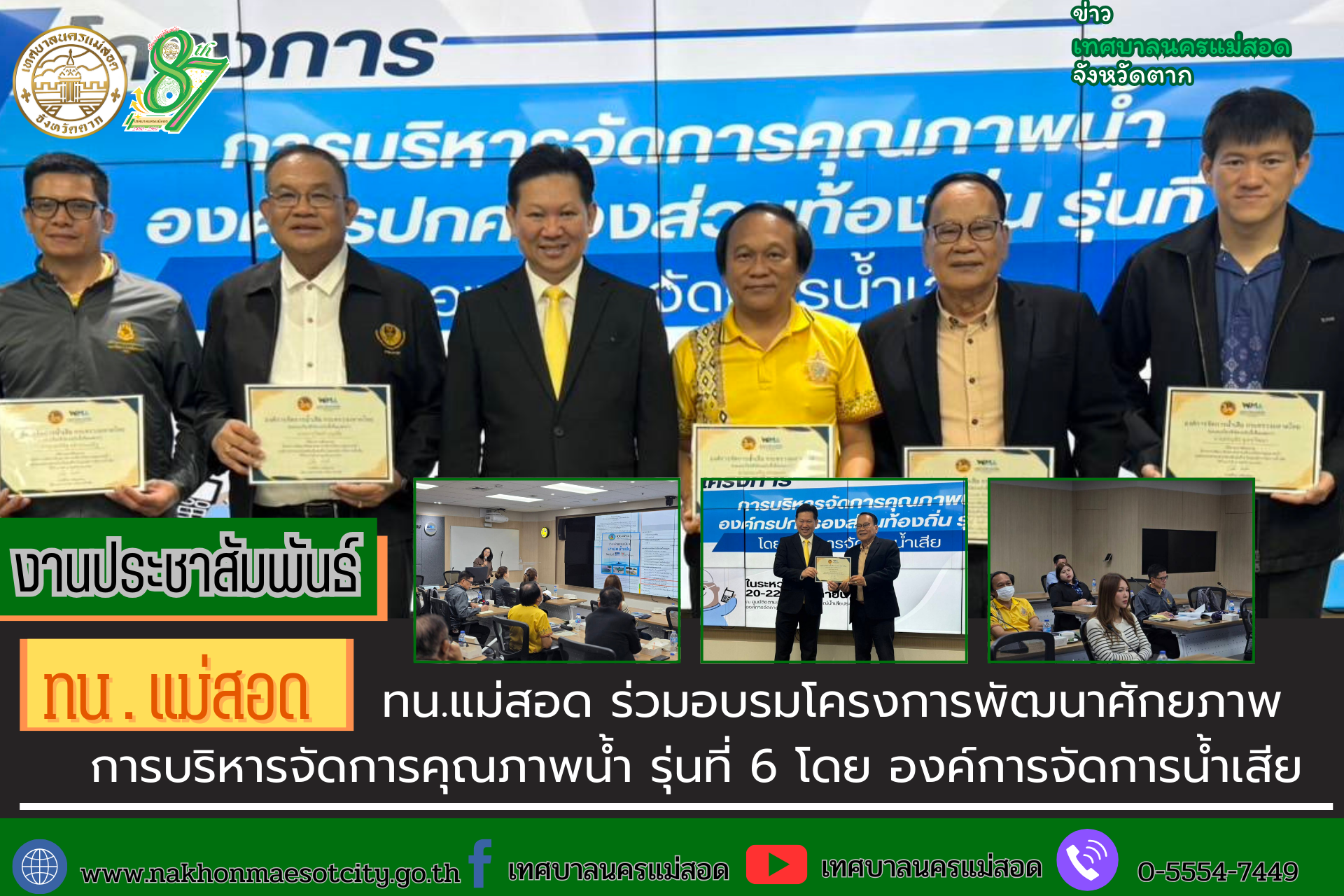 เมื่อวันพุธ ที่ 20 พฤศจิกายน 2567 เวลา 9.00 น. ณ. ห้องประชุมองค์การจัดการน้ำเสีย อาคารเล้าเป้งง้วน 1 ชั้น 24 กรุงเทพมหานคร ว่าที่ร้อยตรี ประเสริฐ ปวงละคร นายกเทศมนตรีนครแม่สอด พร้อมด้วย นายไกรสร กิจการ รองนายกเทศบาลนครแม่สอด