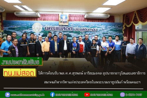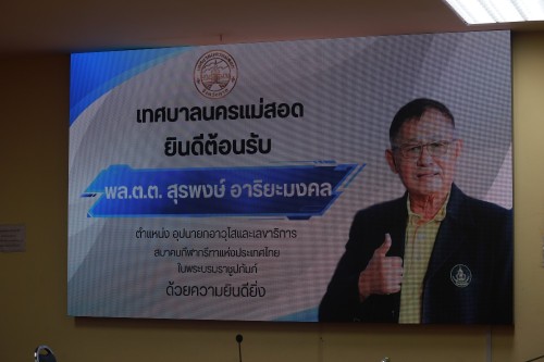 ทน.แม่สอด ให้การต้อนรับ พล.ต.ต.สุรพงษ์ อาริยะมงคล อุปนายกอาวุโสและเลขาธิการ สมาคมกีฬากรีฑาแห่งประเทศไทยในพระบรมราชูปถัมภ์ พร้อมคณะฯ และร่วมลงพื้นที่ตรวจเยี่ยมโรงเรียนกีฬาเทศบาลนครแม่สอด