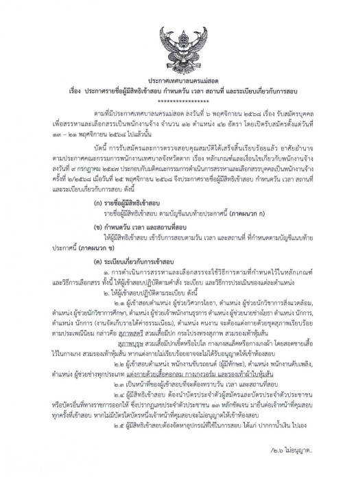 ประกาศเทศบาลนครแม่สอด เรื่อง ประกาศรายชื่อผู้มีสิทธิเข้าสอบ กำหนดวัน เวลา สถานที่ และระเบียบเกี่ยวกับการสอบ