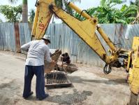 เข้าดำเนินการลอกท่อระบายน้ำ บริเวณชุมชนถุงทอง ภายในซอยโรงเรียนอนุบาลการุณย์ กรณีน้ำระบายไม่ทันในช่วงหน้าฝน