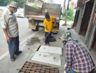 ดำเนินการเปลี่ยนฝาท่อระบายน้ำ บริเวณหน้าร้าน สิงห์เสรี