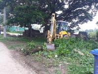เข้าดำเนินการทะลวงท่อระบายน้ำอุดตันพร้อมขุดลอกเปิดทางน้ำ บริเวณชุมชนตาลเดี่ยว