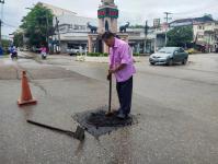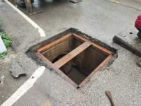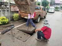 ดำเนินการปรับยกระดับฝาท่อระบายน้ำ กรณีฝาท่อระบายน้ำทรุดตัว บริเวณศาลจังหวัดแม่สอด
