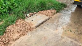 และเทหินลูกรังแนวท่อระบายน้ำ ค.ส.ล.ที่ขุดวางท่อใหม่ บริเวณชุมชนอิสลามบำรุง (สนามโหด)