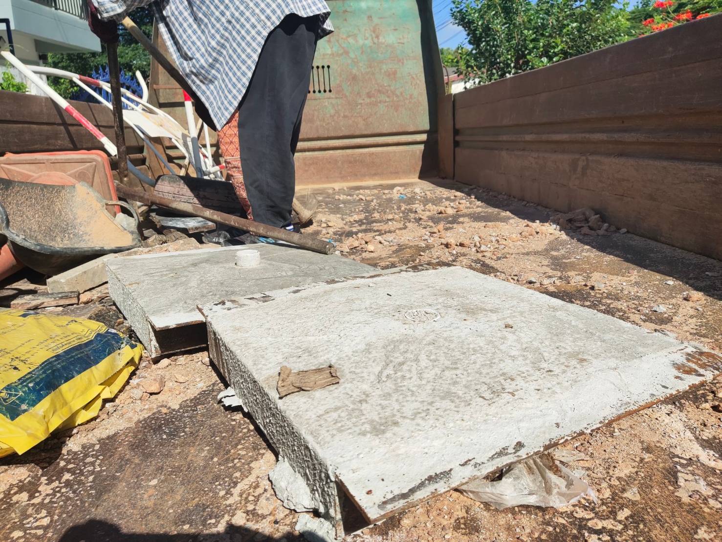 ดำเนินการเปลี่ยนฝาท่อระบายน้ำทรุดตัว (รางยู) จำนวน 2 แผ่น บริเวณซอยหลังสถานีดับเพลิง