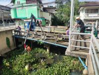 ดำเนินการร่วมกับกองช่างฯ เก็บกำจัดผักตบชวาในลำห้วยแม่สอด บริเวณตรอกลำใย สะพานจงมั่นคง