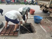 1. เจ้าหน้าที่ภาคสนามกองช่างสุขาภิบาล เข้าดำเนินการทะลวงท่อระบายน้ำ ตักเศษขยะตะแกรงกั้นขยะจุดโลตัสเล็ก