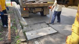 3. เจ้าหน้าที่ภาคสนามกองช่างสุขาภิบาลได้เข้าดำเนินการเปลี่ยนฝาท่อระบายน้ำชำรุด
