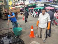 เข้าดำเนินการแก้ไขท่อระบายน้ำอุดตัน บริเวณตลาดสดพาเจริญ