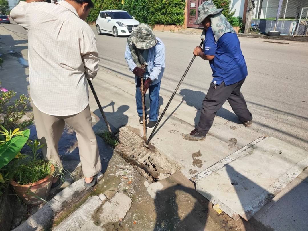 1. เจ้าหน้าที่ภาคสนามกองช่างสุขาภิบาล เข้าดำเนินการเปลี่ยนฝาท่อระบายน้ำ บริเวณหน้าร้านอาหาร เทียนเอิน