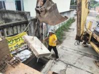 2. เจ้าหน้าที่ภาคสนามกองช่างสุขาภิบาล เข้าดำเนินการขุดเจาะเปิดทางน้ำ