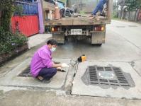เข้าดำเนินการเชื่อมฝาท่อระบายน้ำ (ฝาเหล็กหล่อ) ตามคำร้อง OSS ที่ 000078 ลงวันที่ 31 สิงหาคม 2566 บริเวณถนนบ้านทุ่ง