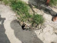 เข้าดำเนินการเทปูนหลุมท่อระบายน้ำทรุดตัวเป็นโพรง