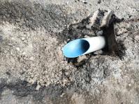 ฝังท่อ PVC ขนาด 3 นิ้ว บริเวณหน้าร้านแม่สอดคลังแก๊ส (กรณีน้ำท้วมขังพื้นผิวไหลทาง)