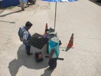 เจ้าหน้าที่ภาคสนามกองช่างสุขาภิบาล ได้เข้าดำเนินการซ่อมแซมฝาท่อระบายน้ำทรุดตัว