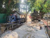 เข้าดำเนินการเก็บเศษกิ่งไม้ วัชพืชและขยะ ที่ติดคานสะพานไม้ (งานก่อสร้างสะพาน)