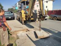 เจ้าหน้าที่ภาคสนามกองช่างสุขาภิบาล เข้าดำเนินการเปลี่ยนฝาท่อระบายน้ำชุดรุด