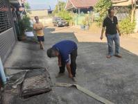 เจ้าหน้าที่ภาคสนามกองช่างสุขาภิบาล เข้าดำเนินการใส่ฝาท่อระบายน้ำ