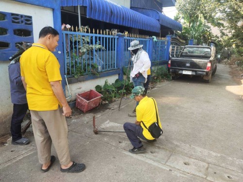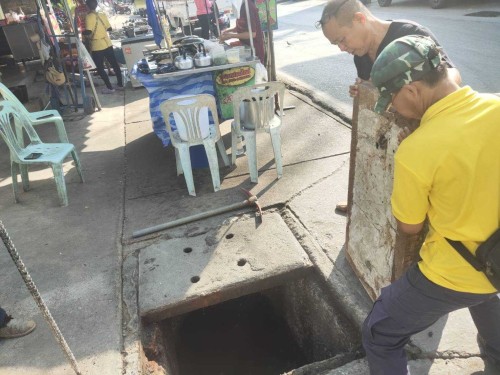 2. เจ้าหน้าที่ภาคสนามกองช่างสุขาภิบาล เข้าดำเนินการเปลี่ยนฝาท่อระบายน้ำชำรุด