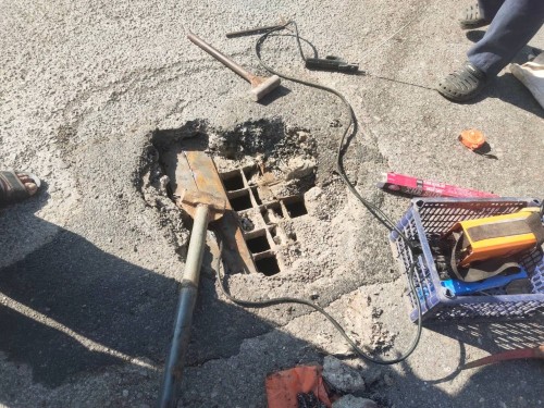ดำเนินการซ่อมแซมฝาท่อระบายน้ำชำรุด (ทรุดตัว) บริเวณวงเวียนหอนาฬิกา โรงเรียนสรรพวิทยาคม