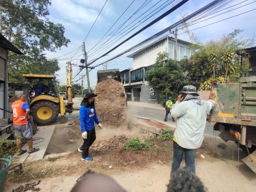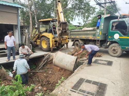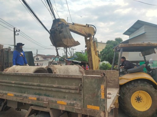 ดำเนินการวางท่อระบายน้ำ ค.ส.ล. ขนาด 60 ซม. จำนวน 5 ลูก พร้อมปรับพื้นที่ด้วยดินลูกรังและหินคลุก