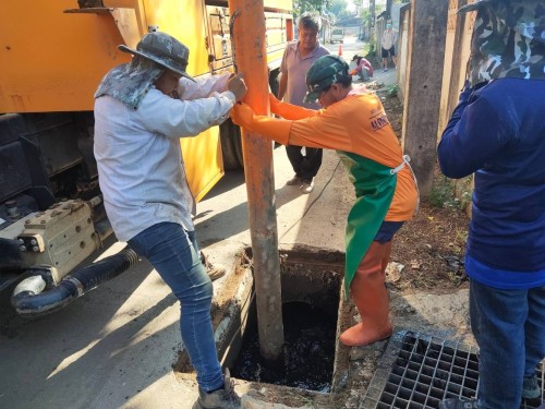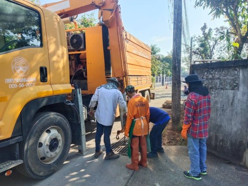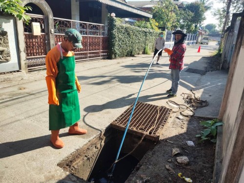 เข้าดำเนินการดูดโคลนลอกท่อระบายน้ำ บริเวณภายในหมู่บ้านถุงทอง (ซอยบ้านครูน้อย)