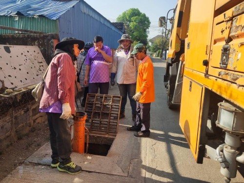 เข้าดำเนินการดูดโคลนลอกท่อระบายน้ำ บริเวณชุมชนสักทอง ซอยหน้าบ้านบุญหนัก