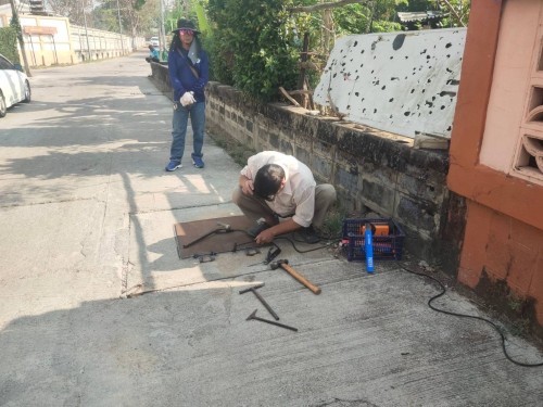 เข้าดำเนินการนำเหล็กแผ่น ขนาด 62x62 ซม. จำนวน 2 แผ่น ปิดฝาท่อระบายน้ำ จำนวน 2 บ่อพัก