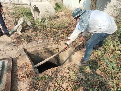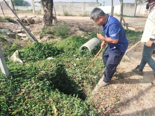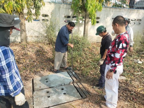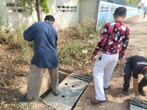 เข้าดำเนินการใส่ฝาท่อระบายน้ำ (กรณีฝาท่อระบายน้ำตะแกรงเหล็กสูญหาย) จำนวน 4 บ่อพัก 8 ฝา