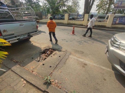 1. เจ้าหน้าที่ภาคสนามกองช่างสุขาภิบาล เข้าดำเนินการเปลี่ยนฝาท่อระบายน้ำที่ชำรุด
