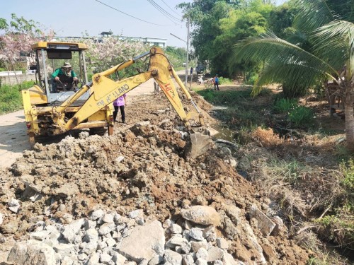 1. เจ้าหน้าที่ภาคสนามกองช่างสุขาภิบาล เข้าดำเนินการปรับเกลี่ยกองดิน