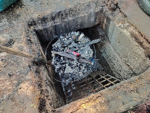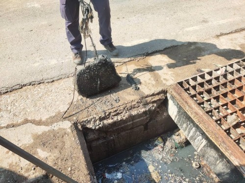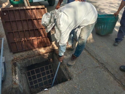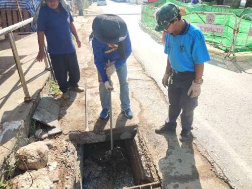 2. เจ้าหน้าที่ภาคสนามกองช่างสุขาภิบาล เข้าดำเนินการตักเศษขยะในตะแกรงกั้นขยะ