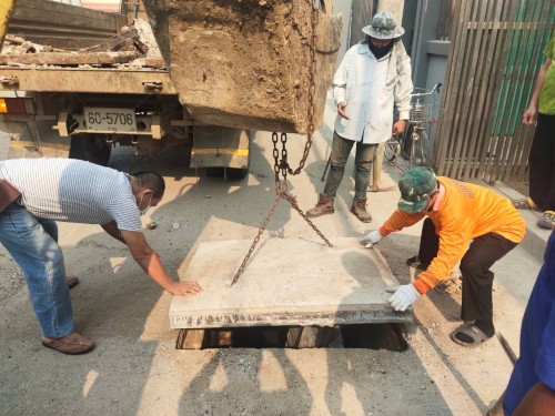 เข้าดำเนินการเปลี่ยนฝาท่อระบายน้ำชำรุด บริเวณชุมชนอิสลาม 4 แยกน้ำบ่อ (ร้านรับซื้อของเก่า)