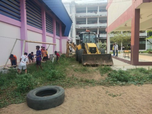 2. เจ้าหน้าที่ภาคสนามกองช่างสุขาภิบาล เข้าดำเนินการปรับเกลี่ยกองดิน บริเวณหน้าทางเข้าสุสานบ้านเหนือ
